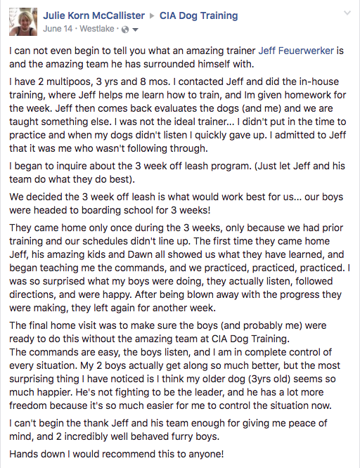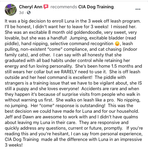 Imagine your dog being able to stay more 50 ft. away OFF LEASH. We make sure your dog will be a "stay" superstar. 🌟🌟🌟